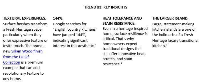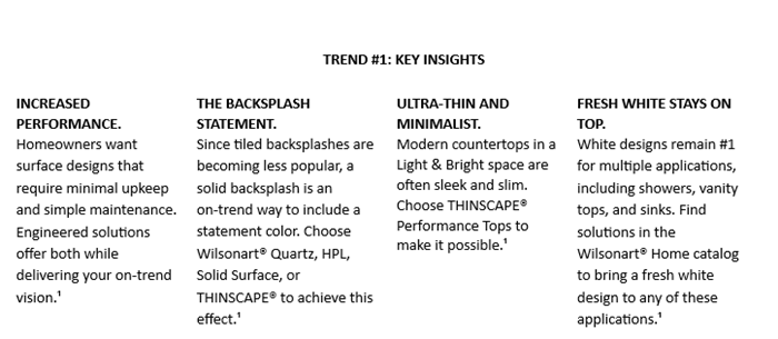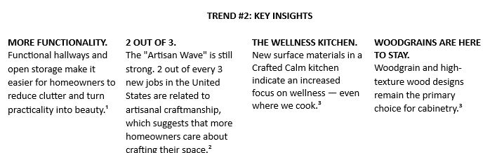 ¹Sphere Trending, ²Foresight Factory, ³Sphere Trending, ⁴2024 NKBA Kitchen Trends Report